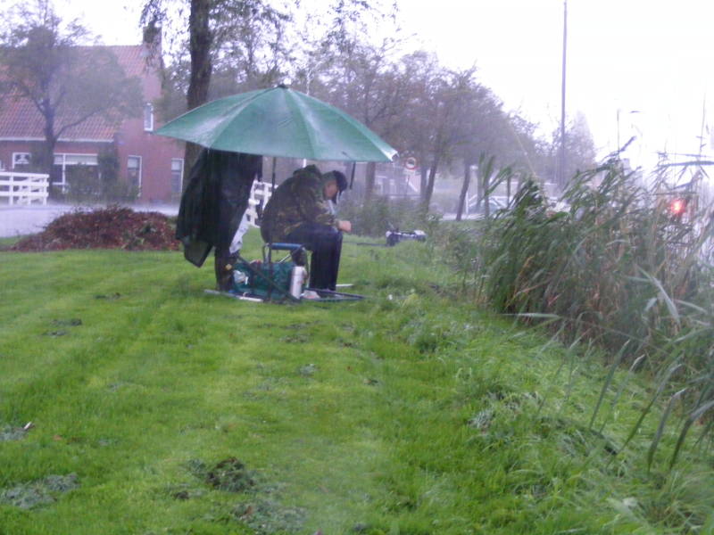 Zo hebben we uur na uur gezeten in de stromende regen.