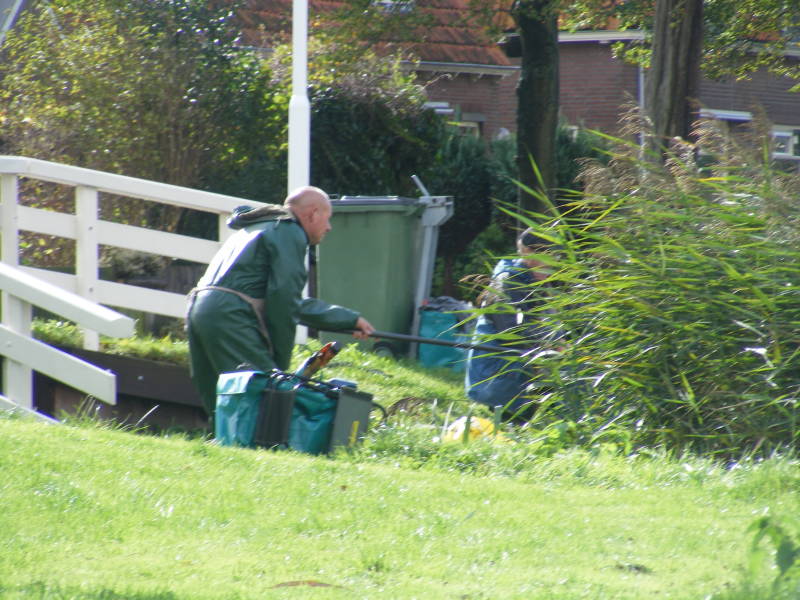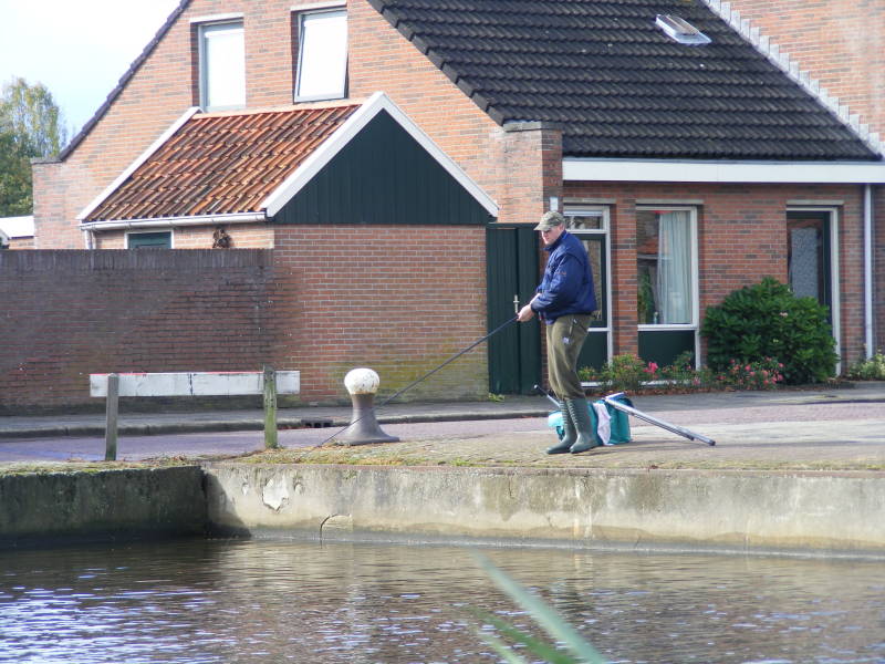 Aan de overkant kwam stiekem Bertus Wijkstra voorbij scharrelen, peilen, voeren en..... vangen.