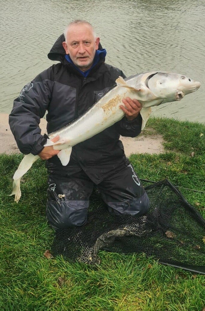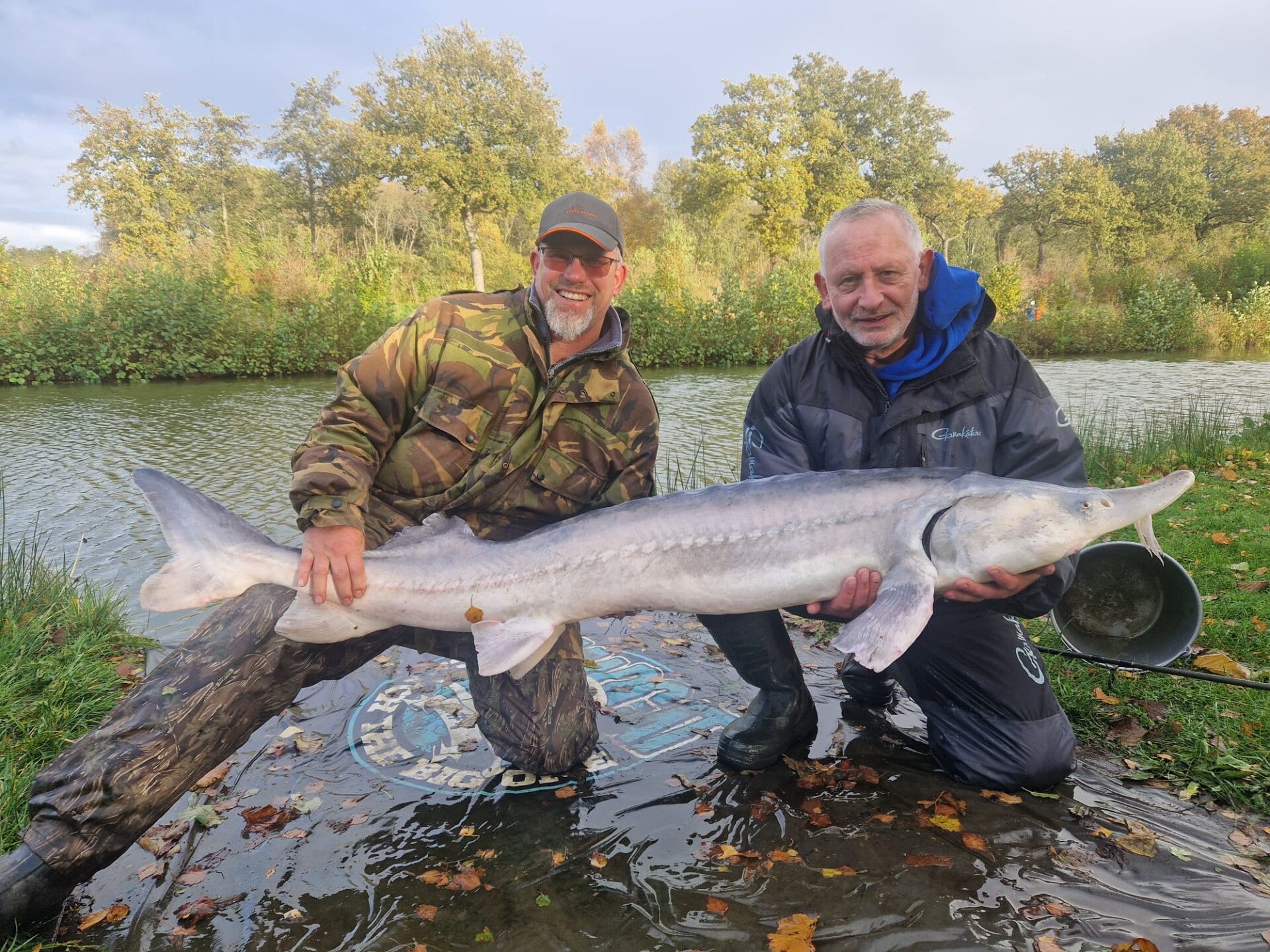 Dat was Fokko met een mooie steur in het zwart, 156 Cm in de belevingsvijver.